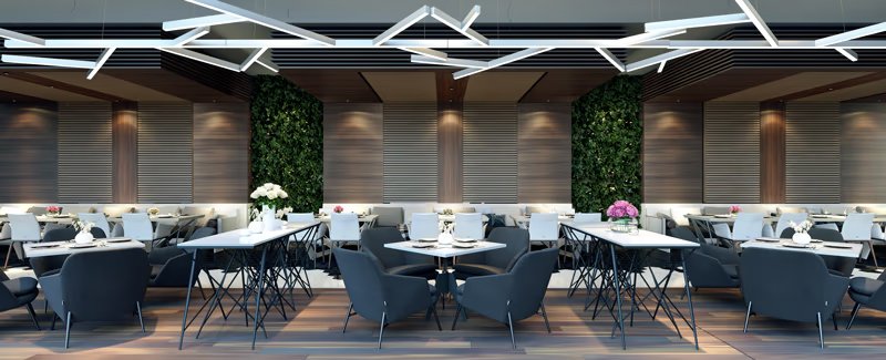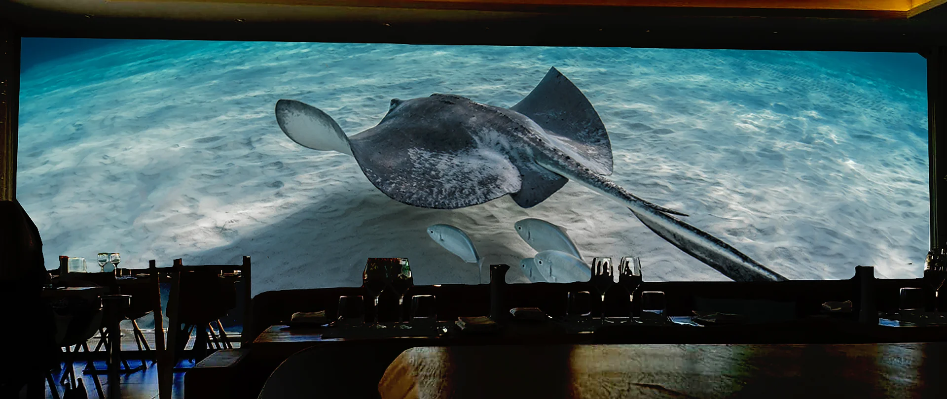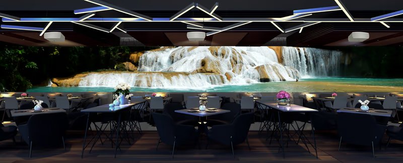 Právě stacionární videomappingová instalace dělá interiér podniku tak bohatým.
